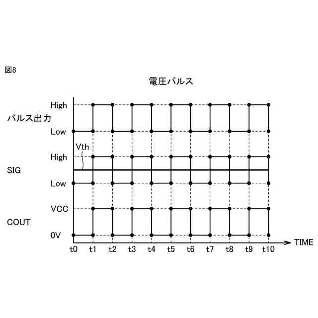 パルス出力型センサを接続した際のセンサ入力回路の動作を説明するための動作波形図である。