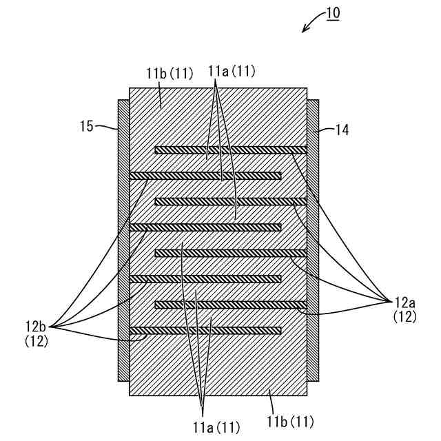 を含む活性層と、前記一方向の両端の前記内部電極より端側に配され、Mn