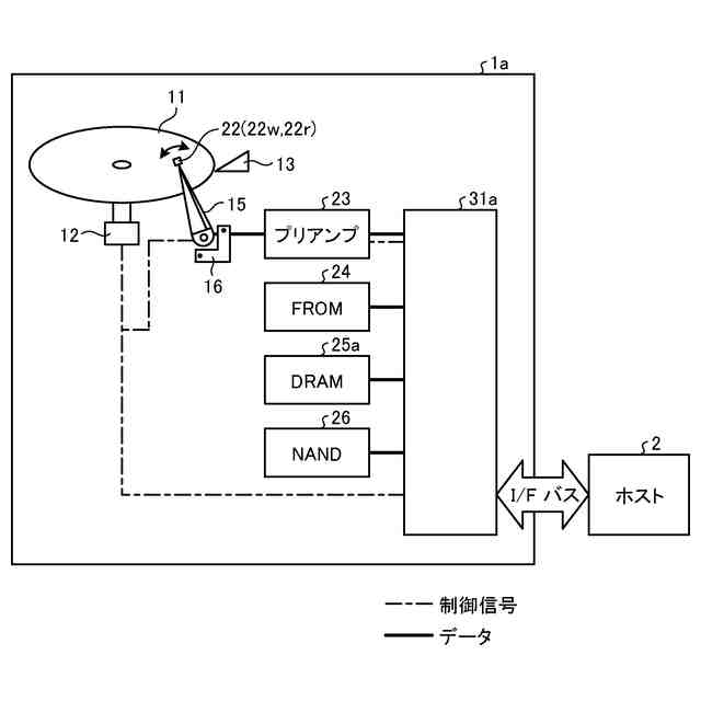 磁気ディスク装置1aは、ホスト2に接続される。磁気ディスク装置1aは、ホスト2からアクセスコマンドを受信することができる。アクセスコマンドは、例えば、ライトコマンドやリードコマンドである。
