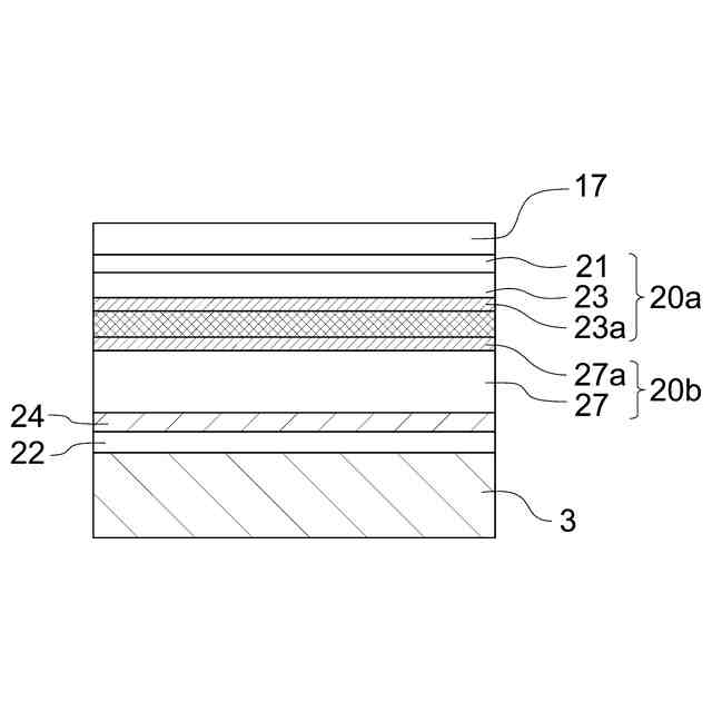 公開番号2025143693 公報種別公開特許公報(A) 公開日2025-10-02 出願番号2024043055 出願日2024-03-19 発明の名称赤外LED素子 出願人ウシオ電機株式会社 代理人弁理士法人ユニアス国際特許事務所 主分類H10H 20/824 20250101AFI20250925BHJP() 要約【課題】従来に比べてより低い駆動電圧により点灯させることができる赤外LED素子を提供する。 【解決手段】ピーク波長が1350nm~2000nmの赤外光を出射可能な赤外LED素子であって、第一導電型を示す第一半導体層と、厚みが15nm以上である中間層とを有する第一積層体と、第一積層体の中間層の上層に配置された活性層と、少なくとも前記第一導電型とは異なる第二導電型を示す第二半導体層を有する、活性層の上層に配置された第二積層体とを備え、活性層のバンドギャップエネルギーをEa、中間層のバンドギャップエネルギーをEm、第一半導体層のバンドギャップエネルギーをEpとしたときに、Ea<Em<Epである。 【選択図】 図1 特許請求の範囲【請求項1】 ピーク波長が1350nm~2000nmの赤外光を出射可能な赤外LED素子であって、 積層方向に、n型又はp型である第一導電型を示す第一半導体層と、厚みが15nm以上である中間層とを有する第一積層体と、 前記第一積層体の前記中間層の上層に配置された活性層と、 前記第一導電型とは異なる第二導電型を示す第二半導体層を有し、前記活性層の上層に配置された第二積層体とを備え、 前記活性層のバンドギャップエネルギーをE a 、前記中間層のバンドギャップエネルギーをE m 、前記第一半導体層のバンドギャップエネルギーをE p としたときに、E a <E m <E p であることを特徴とする赤外LED素子。 続きを表示(約 710 文字)【請求項2】 前記活性層は、井戸層、及び障壁層が積層されてなり、前記障壁層のバンドギャップエネルギーをE b としたときに、E a <E b <E m であることを特徴とする請求項1に記載の赤外LED素子。 【請求項3】 前記中間層は、ドーパント濃度が2×10 18 /cm 3 以下の半導体層であることを特徴とする請求項1又は2に記載の赤外LED素子。 【請求項4】 前記活性層は、厚みが30nm以上であることを特徴とする請求項1又は2に記載の赤外LED素子。 【請求項5】 前記第一半導体層がInPからなることを特徴とする請求項1又は2に記載の赤外LED素子。 【請求項6】 前記活性層がGaInAsPからなることを特徴とする請求項1又は2に記載の赤外LED素子。 【請求項7】 前記第一積層体は、前記第一半導体層の上層に配置されたAlInAsからなる電子ブロック層を有することを特徴とする請求項1又は2に記載の赤外LED素子。 【請求項8】 前記活性層のバンドギャップエネルギーをE a と、前記第一半導体層のバンドギャップエネルギーをE p との差を100%としたときに、前記活性層のバンドギャップエネルギーをE a と、前記中間層のバンドギャップエネルギーE m との差が30%~60%の範囲内であることを特徴とする請求項1又は2に記載の赤外LED素子。