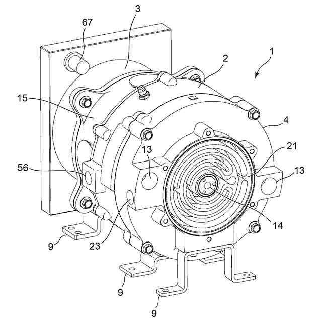 固定スクロールに対して可動スクロールを公転旋回運動させることで空気を圧縮するスクロール式のエアコンプレッサは、駆動中における摩擦や圧縮熱により固定スクロールや可動スクロール、軸受部やオイル、吐出空気の温度上昇が生じ、耐久性が低下する問題がある。