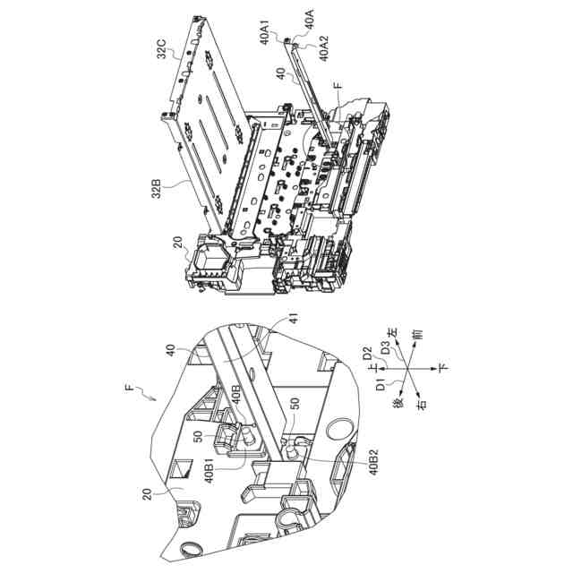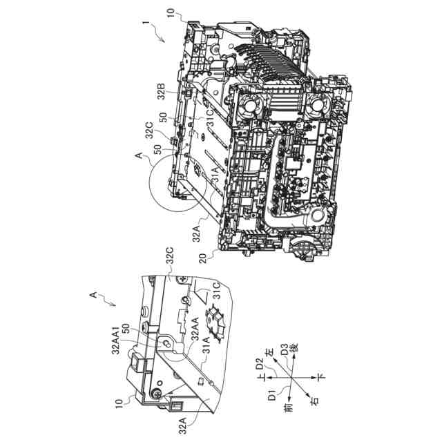また、第1補助プレートは、第1壁面プレート側に折り曲げられ、第2補助プレートは、第2壁面プレート側に折り曲げられる、ことを特徴とする。これにより、スキャナフレームの取付位置をコンパクトにまとめることができる。