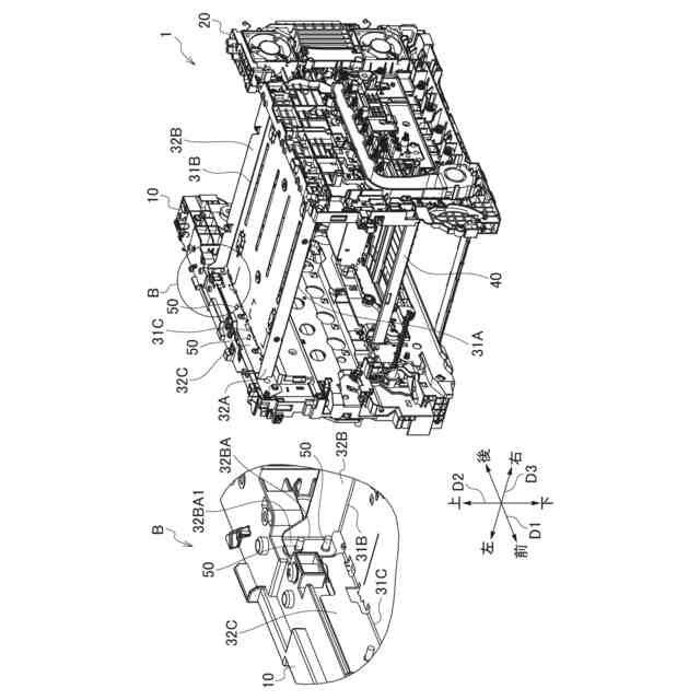 また、第1壁面プレート、第1補助プレート及び第3補助プレートと一方の本体フレームとのねじ止めは、一方の本体フレームの外側からなされ、第2壁面プレート、第2補助プレート及び第4補助プレートと他方の本体フレームとのねじ止めは、他方の本体フレームの外側からなされる、ことを特徴とする。このようにねじ止めは同じ方向からなされるので、スキャナフレームを一対の本体フレームに取り付ける際の取付作業の作業効率を高めることができる。