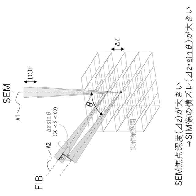 【解決手段】集束イオンビーム装置は、電子ビーム鏡筒と、イオンビーム鏡筒と、試料を電子ビーム及びイオンビームに対して傾斜させることが可能な試料保持部と、電子ビームの走査点及び電子ビームの集束距離で規定される実作業空間を規定し、観察方位が互いに異なる試料の複数の電子顕微鏡画像を取得し、複数の電子顕微鏡画像に基づいて、試料の実空間情報を含む3次元モデルを作成し、試料保持部の動作に伴い試料の姿勢変化をおこない、イオンビームの照射軸から眺めた場合の、試料の2次元画像を、3次元モデルから取得し、2次元画像を用いて、イオンビームを照射する所定範囲を決定し、所定範囲にイオンビーム鏡筒を用いてイオンビームを照射することにより試料を加工する制御部と、を備える。