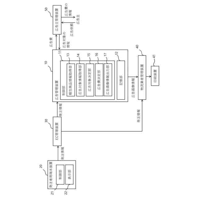 【解決手段】梱包材に梱包される商品の属性情報を取得する梱包商品情報取得部13と、商品の属性情報に基づいて、梱包材に印刷される広告の広告費を決定する広告費決定部16とを備える。