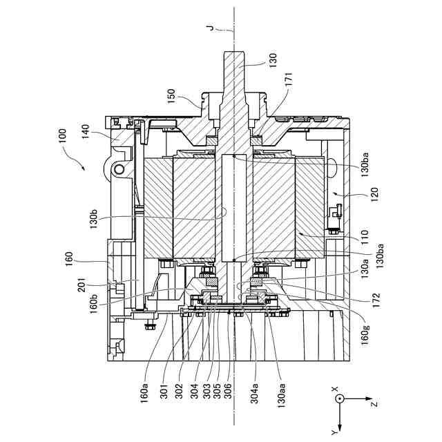 本発明の第1実施形態に係るモータ100の側断面図である。