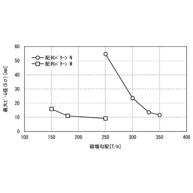 ところで、質量:電荷比が小さな1価のHeイオン等を加速する場合、収束要素(収束磁石)のビーム収束力の方向が異なる収束要素内蔵ドリフトチューブ102、104を、ビーム軸Oに沿って交互に配置すると、ビーム径を抑制するために必要な収束要素が有すべき磁場勾配は、収束要素内蔵ドリフトチューブ102、104のそれぞれの収束要素において非常に大きくなってしまう。特に、収束要素として永久磁石を用いる場合には、永久磁石材料の残留磁束密度が定まっているために、上述の大きな磁場勾配の実現が困難な場合がある。