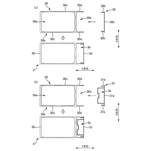 図3(a)図は、給電ケーブルが挿通される柱を示す平断面図であり、図3(b)図は、縦樋部を備えた柱を示す平断面図である。