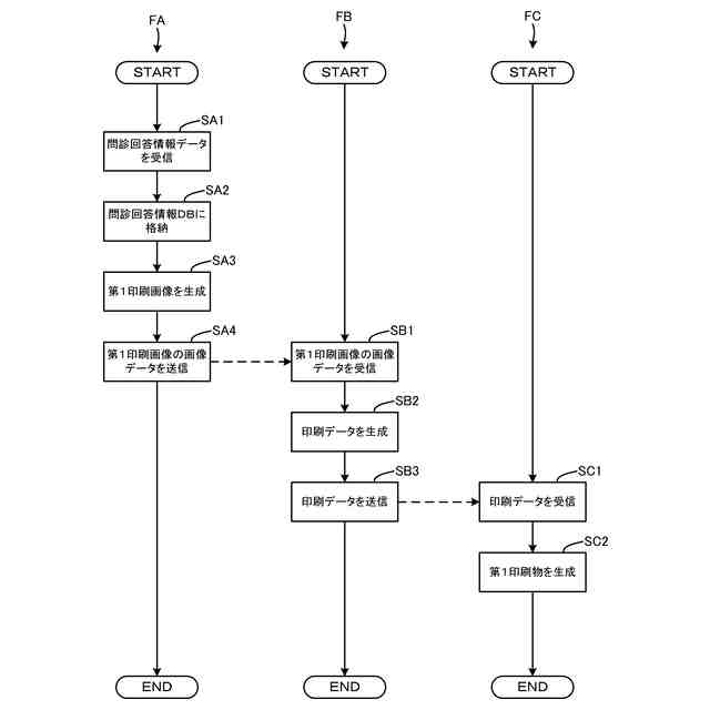 問診管理サーバー、及び印刷サーバーの構成を示す図。