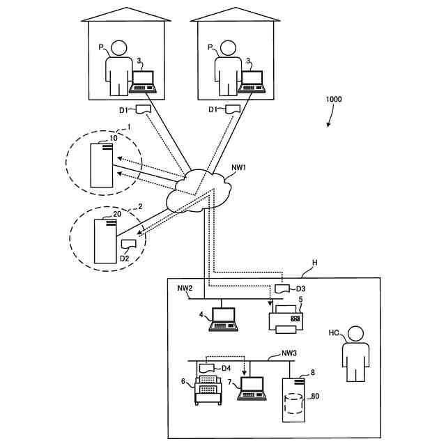 本実施形態の情報管理システム1000は、例えば病院Hに適用されるシステムであって、問診回答情報J1を管理するシステムである。問診回答情報J1とは、問診に対して患者Pが回答した情報である。問診回答情報J1は、例えば、患者Pが回答した薬歴や、患者Pが回答した既往歴、患者Pが回答した受診歴などを含む。