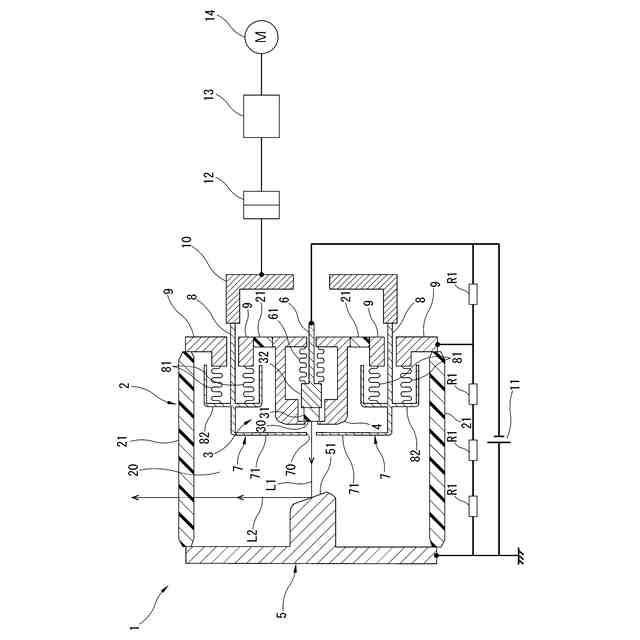 しかしながら、抵抗R1側の電圧は高圧電源11aの電圧で一意に決まるため、前記電界放射装置1の出力特性(例えば管電流)を任意に制御できない。ガード電極4と共にエミッタ31を可動させる前記出力特性を制御する方式も考えられるが可動構造やその制御も複雑となる。