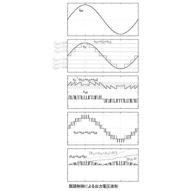 前記各相の直列接続終端は共通に接続されている(スター結線)。ここでセルU1、セルU2、セルU3、セルU4の交流の相電圧(相電圧検出信号)をv