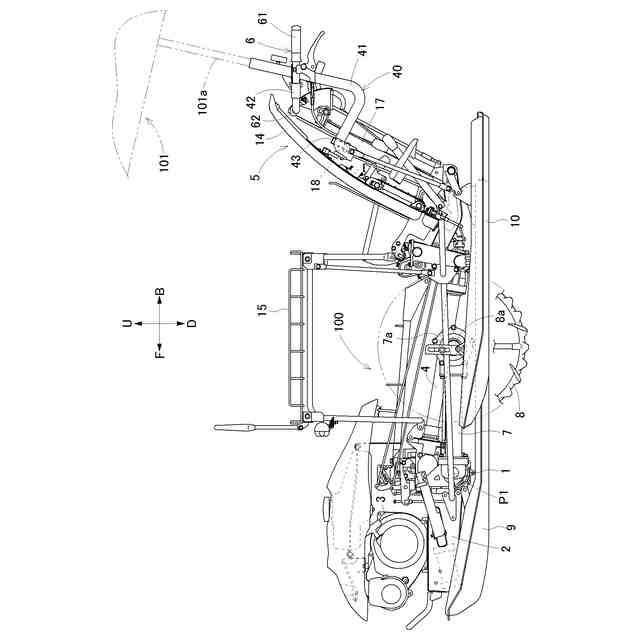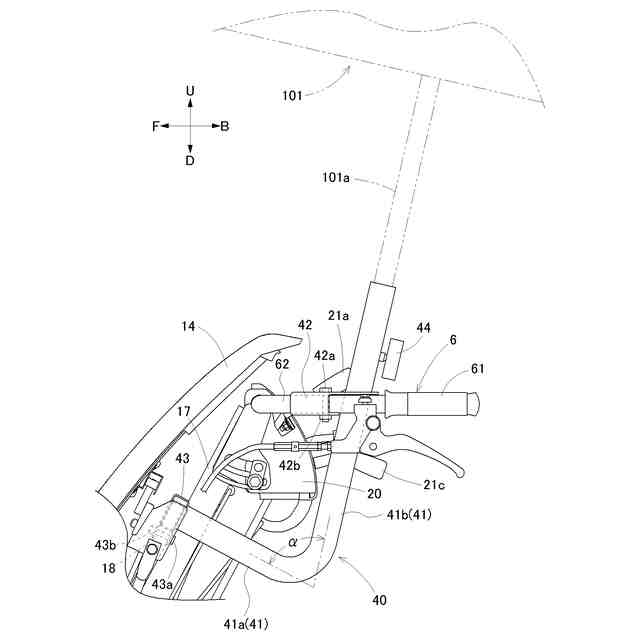 前記保護部材ホルダが、筒状部材を有し、前記筒状部材が前記機体から後方に延びる第1部分と前記第1部分の後端部から上方に延びる第2部分とを有し、