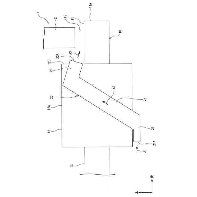 前記排気管の下部に配置され、車両前方を向いて開口する取入口を有する取入部と、