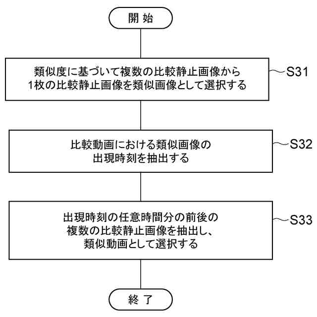 前記抽出部は、前記比較結果に基づいて、前記静止画像に類似する前記比較静止画像である類似画像を含む所定期間の前記類似動画を前記比較動画から抽出する、