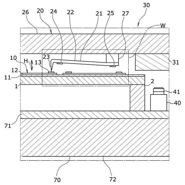 具体的には、プローブカードは、基板と、この基板の表面上に取り付けられるプローブとを有する。このようなプローブカードは、そのプローブに設けられる針を電極パッドに接触させた状態で、プローブを介してチップへの通電を行うようになっている。プローバは、プローブカードを備え、ワークの電気特性の検査に用いられる。プローバは、電極パッドとプローブカードのプローブの針とを互いに接触させた状態を保持可能とするように構成される。