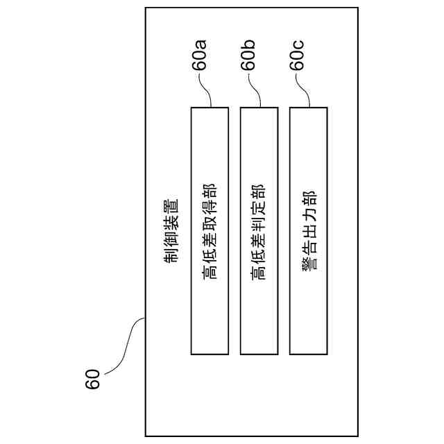 前記高低差判定部が前記高低差の取得値が所定の閾値を超えたと判定した場合に、警告を出力するように前記出力機器を制御する警告出力部と、