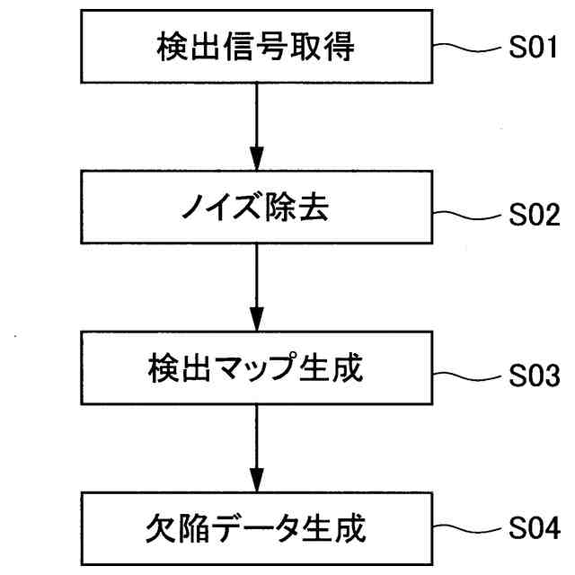 【解決手段】 薄鋼板の幅方向に沿って検出される複数の検出信号に基づいて、前記薄鋼板の欠陥を検査する薄鋼板の欠陥検査方法である。薄鋼板の欠陥検査方法は、前記複数の検出信号を1のデータ列とし、時系列毎に複数のデータ列を取得する検出信号取得ステップと、前記検出信号取得ステップで取得された複数の前記データ列に含まれるノイズを除去するノイズ除去ステップと、前記ノイズ除去ステップが施された複数の前記データ列を前記時系列毎に配置して検出マップを生成する検出マップ生成ステップと、前記検出マップに基づいて前記薄鋼板の欠陥に関するデータである、欠陥データを生成する欠陥データ生成ステップと、を含む。