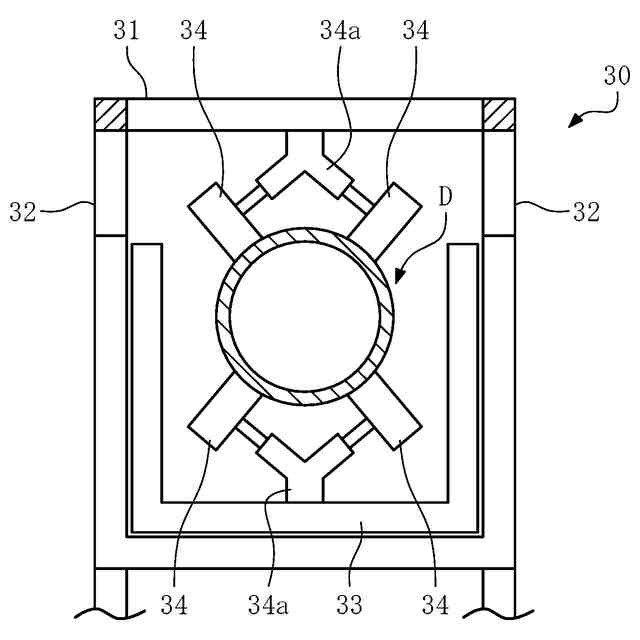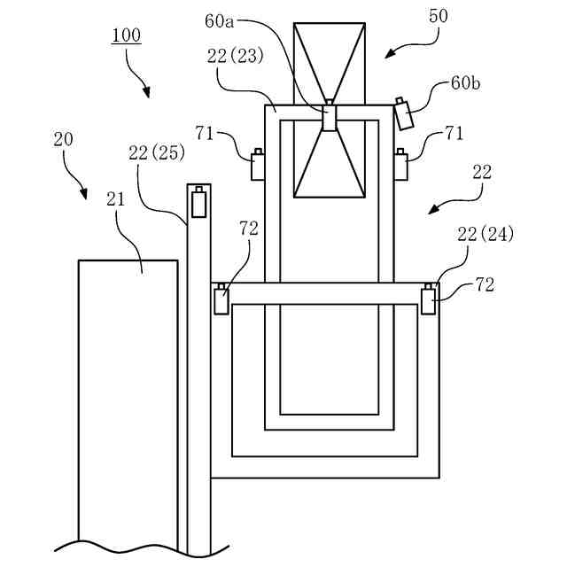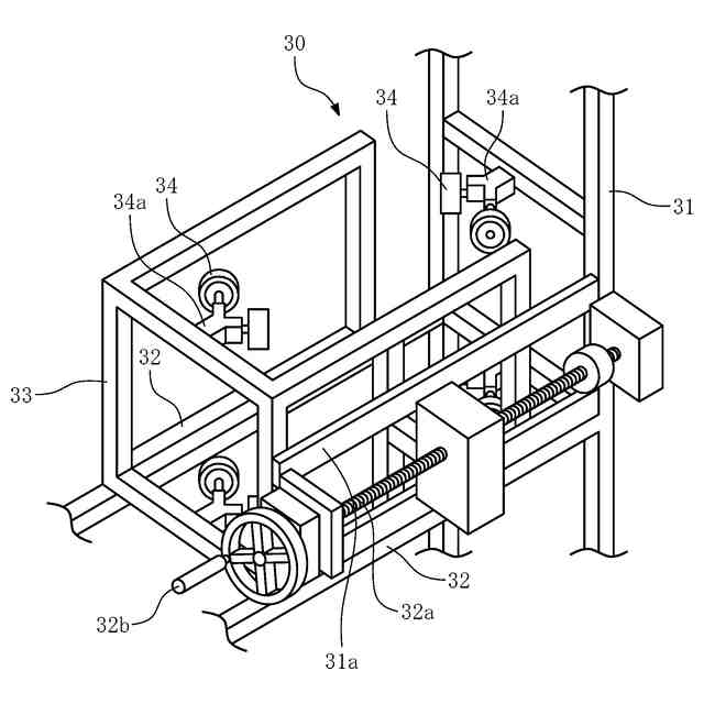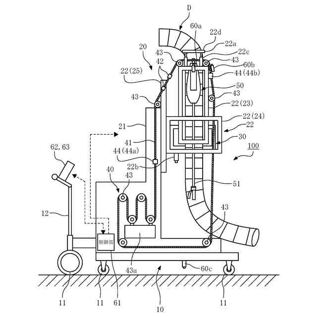 上下方向に昇降する前記動作部としての支持フレームを備えた前記動作装置としての昇降部と、