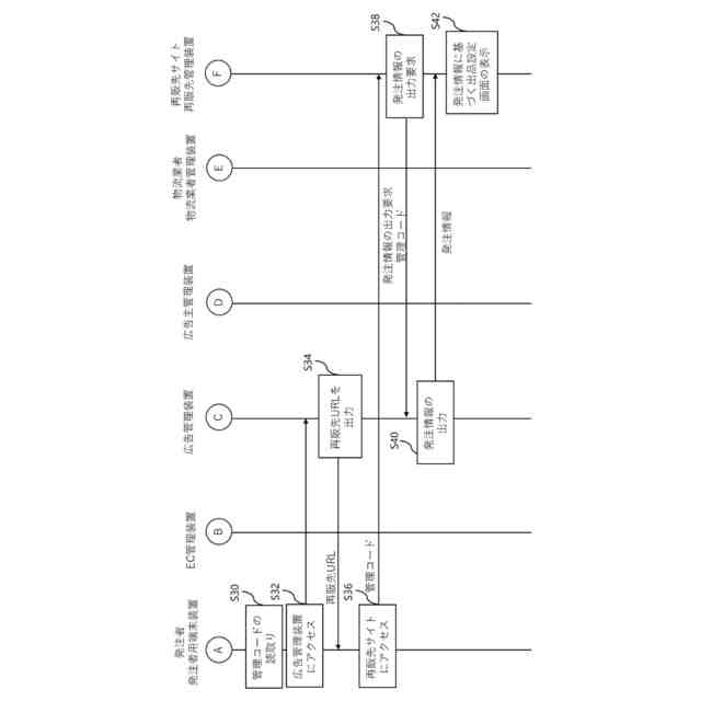 【解決手段】再販先サイトへのアクセス情報を含む再販先の広告情報であって、商品の梱包材に印刷される広告情報を複数記憶する記憶部12と、商品の発注情報の取得に応じて、複数の広告情報の中からいずれかの広告情報を選択する広告情報選択部15と、商品の発注情報と選択された広告情報とを対応づけて管理する発注情報管理部17とを備え、発注情報管理部17が、商品の梱包材に印刷された広告情報の読取りに応じて、再販先サイトに対して広告情報に対応する商品の発注情報を出力する。