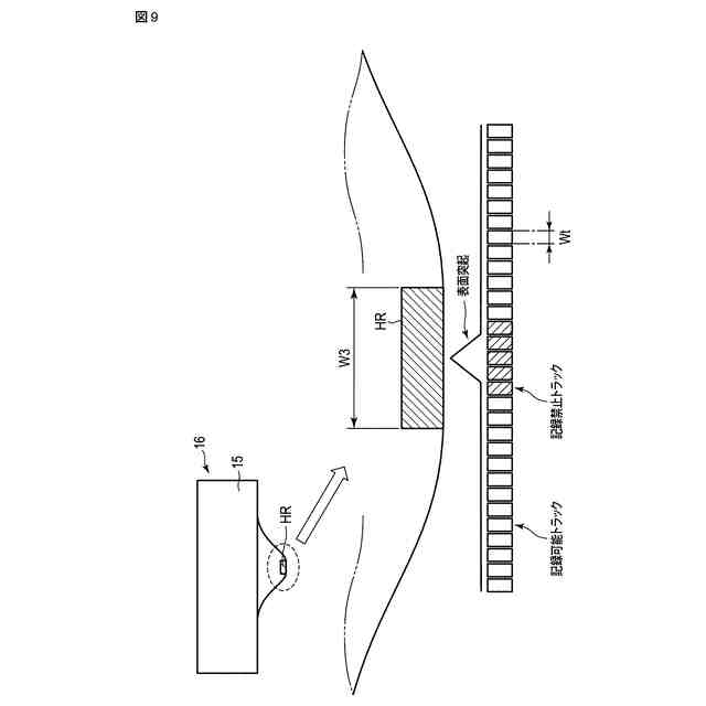 図9は、熱抵抗センサと記録トラックと突起との関係を模式的に示す図。