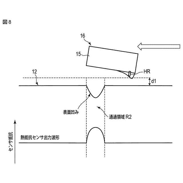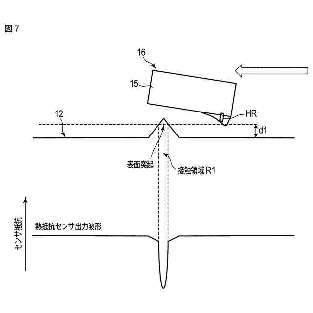 図7は、記録媒体上の突起接触時の熱抵抗センサの出力を模式的に示す図。