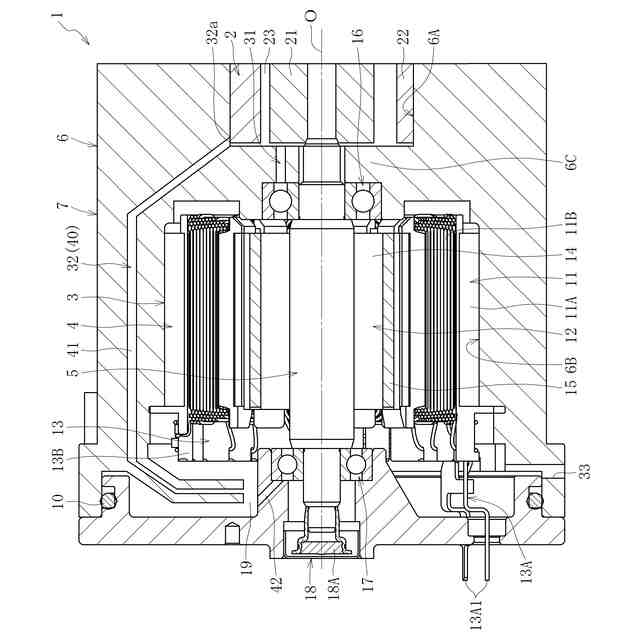 【解決手段】ポンプ部2及びモータ部3を収容するハウジング6を備え、モータ部3の出力軸5が、第1及び第2転がり軸受16,17によりハウジング6に対して回転自在に支持され、出力軸5が回転するのに伴って、出力軸5の軸方向一方側の端部に設けたインナロータ21がポンプ室6A内で回転することにより、オイルが吸入及び吐出されると共に、ポンプ室6A内のオイルが給油路を介して第2転がり軸受17に供給される電動オイルポンプ1である。第2転がり軸受17にオイルを供給する第2給油路32は、モータ室6Bの第2転がり軸受17の収容空間とポンプ室6Aとを連通している。