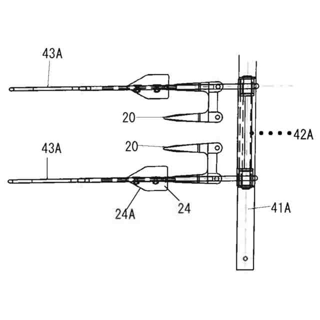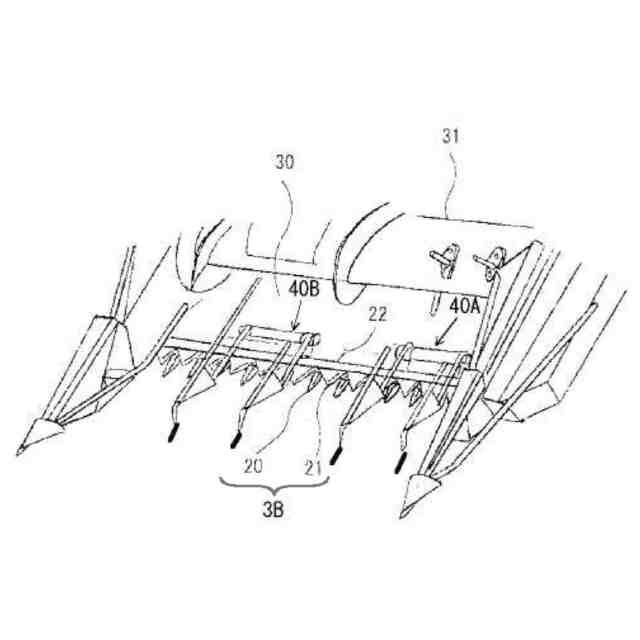 請求項1の発明で、支軸42に枢支したリフタ43は刈刃装置3Bの刈刃プレート22に当接する調整ボルト23でその先端を刈刃装置3Bの直前で地面上に接近するように調整することが容易に出来るので、リフタ部の先端が地面に深く突き刺ささって折れ曲がったり破損することを防止できる。また、圃場に倒れ込んでいる作物背丈の低い作物などをリフタ43で拾い上げて収集を効率的に行える。