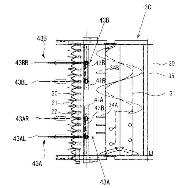請求項3の発明は、ガイド板24Aの左右側面を前から後方に向けて側方へ拡げたことを特徴とする請求項2に記載の汎用コンバインとする。