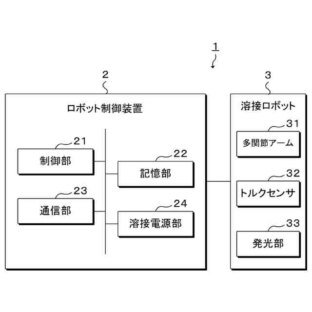 【解決手段】ロボットシステム1は、多関節アーム31と、多関節アーム31を構成する軸を駆動するモータの出力側に設けられ、多関節アームに加わる外力を計測するトルクセンサ32と、光を発光する発光部33と、トルクセンサ32により計測された外力の大きさによって異なる光を、発光部33から発光させる発光制御部と、を備える。