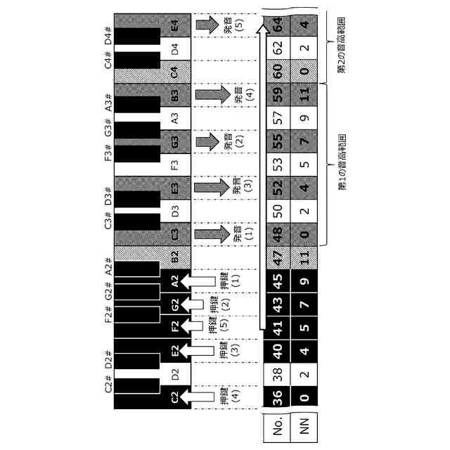 電子楽器に対するユーザの演奏操作を補助する装置が知られている(例えば特許文献1参照)。特許文献1に記載の装置は、曲のコード進行データに従い、ユーザが押すべき鍵を指示する。ユーザは、この指示に従い、コード構成音の鍵を押すことでコード演奏を行うことができる。