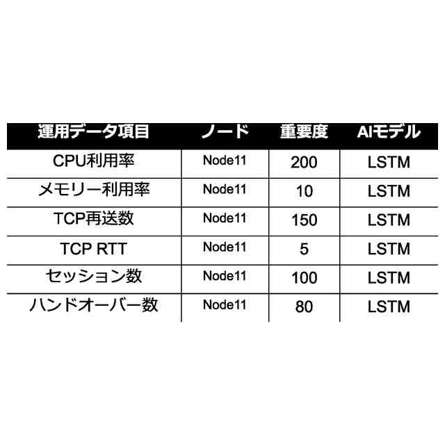 【解決手段】ネットワークから収集した運用データをAIモデルに適用して得られる推論結果を用いてネットワークを運用するシステムにおいて、ネットワークから情報の項目ごとに運用データを取得し、取得した運用データをデータベースに保存し、運用データを用いてAIモデルを訓練し、AIモデルを訓練した運用データの項目ごとに重要度を計算し、重要度が所定の上位条件を充足しない項目の運用データをデータベースから削除し、重要度が所定の上位条件を充足する項目の運用データを用いて前記AIモデルを再訓練し、再訓練したAIモデルに重要度が所定の上位条件を充足する項目の運用データを適用して推論結果を出力する。