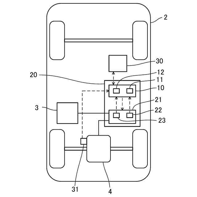 図面を参照して実施例のコントローラ10を説明する。コントローラ10は、自動車2に搭載されている。図1に、コントローラ10を含む自動車2のブロック図を示す。自動車2は、電気モータ(モータ4)で走行する電気自動車である。