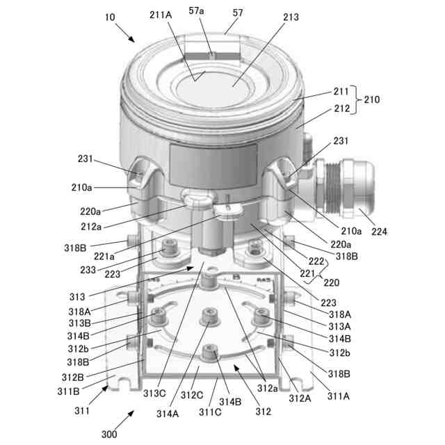 かかる構成によれば、第1マークと第2マークとを一致させるように、本体ケースと下部ケースを嵌合させると、自動的に嵌合の位置合わせができ、結合用ネジによる本体ケースと下部ケースの結合作業を容易に行うことができる。