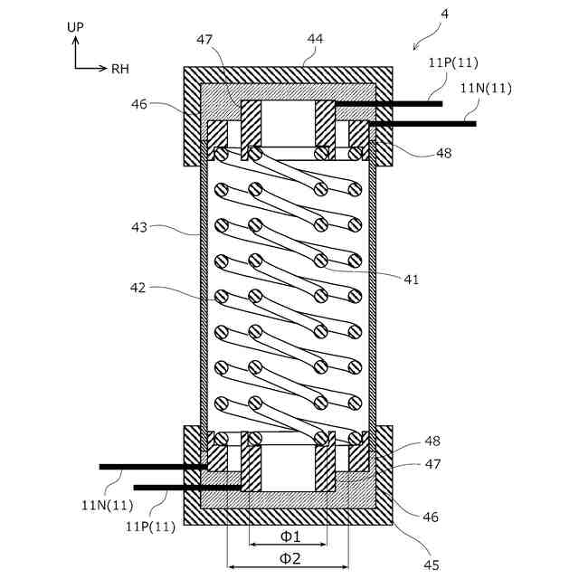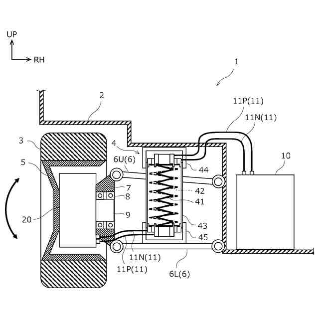 また、上記の特許文献2のような、サスペンション装置のコイルスプリングで導線の一部を構成する技術を、高圧電力線に適用する場合、磁気の発生に対する対策が必要となる。