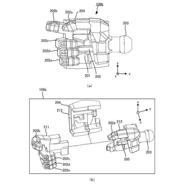 一実施形態に係る手部品の組立構成を示す図。