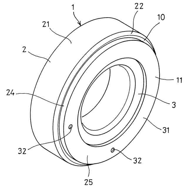前記円筒部(24)の軸方向一端に、前記軸方向端面(10)に対して傾斜した面取り面(26)が形成され、