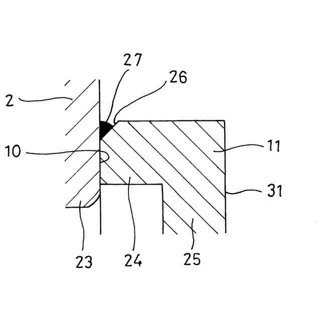 前記スポット溶接部(27)が前記面取り面(26)と前記軸方向端面(10)との間に形成される断面三角状の環状隙間に収容されている請求項8に記載の転がり軸受。