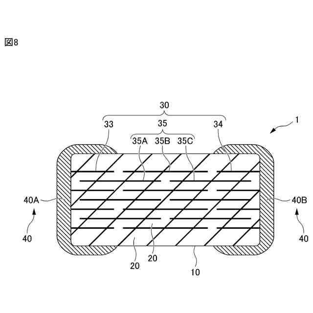 なお、図面は、発明の内容を説明するため、模式的に簡略化して描画している場合があり、描画された構成要素または構成要素間の寸法の比率が、明細書に記載されたそれらの寸法の比率と一致していない場合がある。また、明細書に記載されている構成要素が、図面において省略されている場合や、個数を省略して描画されている場合などがある。例えば、図2、図3に記述される内部電極層の数は、説明の便宜上、10層となっているが、これは、実際の内部電極層30の数を示すものではない。なお、本発明において用いる、形状や幾何学的条件、および、それらの程度を特定する用語、例えば、「平行」、「直交」、「同一」等の用語や長さや角度の値等については、厳密な意味に縛られることなく、同様の機能を期待し得る程度の範囲を含めて解釈することとする。
