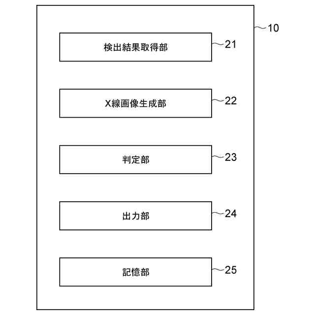 (4)上記(1)~(3)の何れか一つのX線検査装置は、判定部による検査結果を表示する表示部を備え、表示部は、特定領域がある場合、該当する領域の面積、長さ、密集度、第一辺の長さに対する第二辺の長さの比又は第二辺の長さに対する第一辺の長さの比を表示してもよい。この構成では、所定サイズ未満の異物がどのような特性を有しているのかを容易に確認することができる。