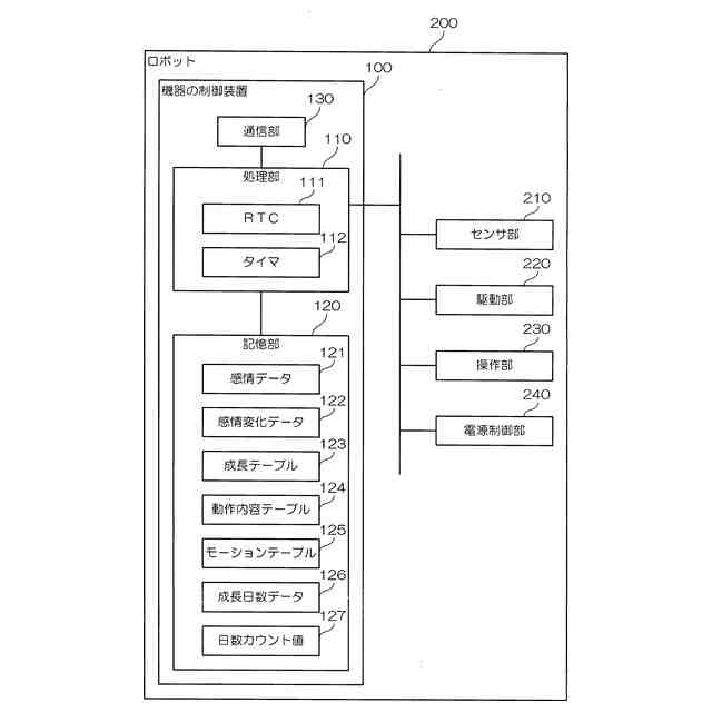 近年、ユーザとコミュニケーションを図ることを目的としたロボットが開発されている。このようなロボットでは、ロボットの疑似的な成長を表現するパラメータとして初回起動時からの経過時間が用いられることがある(例えば、特許文献1参照)。