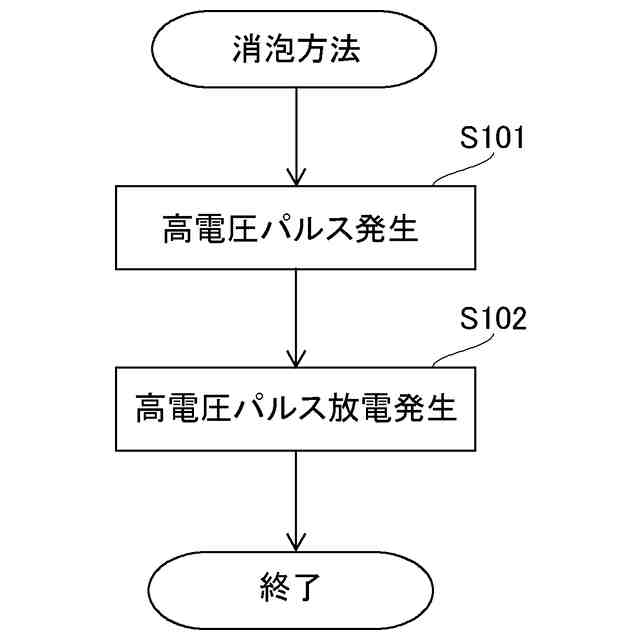 前記高電圧パルス発生部から前記高電圧パルスが印加される高電圧電極と対極と間で高電圧パルス放電を発生させることにより消泡を行うことと、