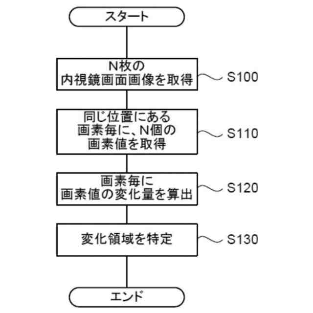 前記プロセッサは、前記第1地点として指定された画素を含み、近傍の画素と共にそれぞれの画素値が時間の経過と共に変化する画素によって構成された変化領域に基づき前記内視鏡画像の範囲を特定する