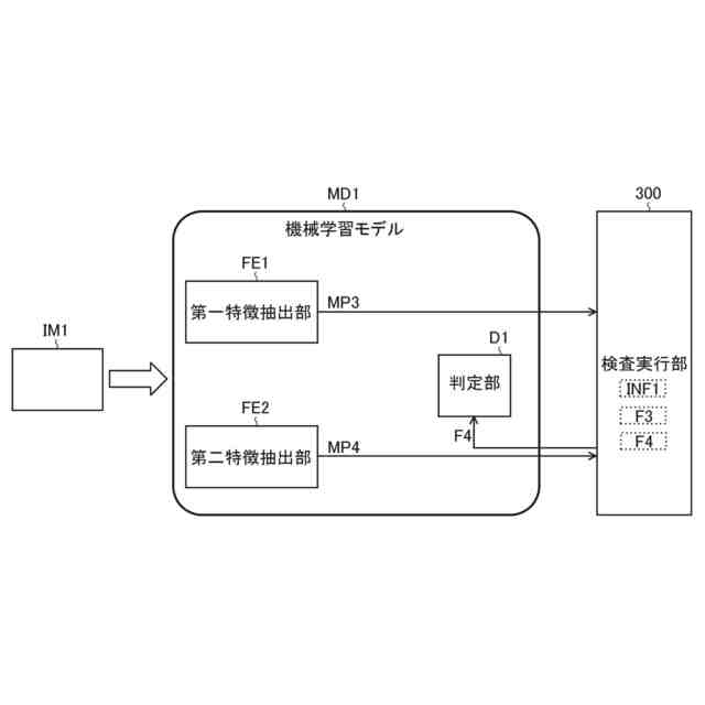 前記機械学習モデルは、入力された画像から特徴量を抽出する第一特徴抽出部及び第二特徴抽出部と、前記特徴量から前記検査結果を出力する判定部と、を含み、