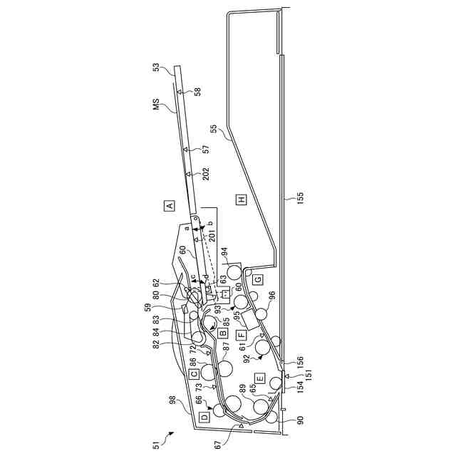 一実施形態に係るADFの要部構成をスキャナの上部と共に示す拡大構成図である。