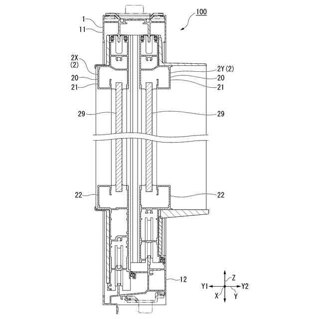 以下の説明では、屋外側と屋内側とを結び水平方向に沿う方向を、屋内外方向Yと称する。屋内外方向Yと直交し水平方向に沿う方向を、左右方向Xと称する。屋内外方向Y及び左右方向Xと直交する方向を、上下方向Zと称する。屋内外方向Yのうち、屋外側を屋外側Y1と示し、屋内側を屋内側Y2と示す。各構成部材において、左右方向Xのうち左右方向Xで各障子2の中心から離れる側を外側と称し、各障子2の中心に向かう側を内側と称する場合がある。