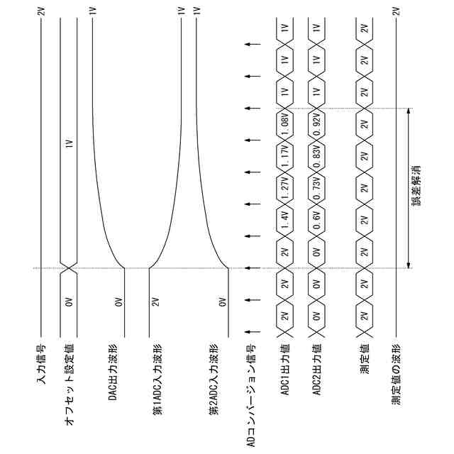 入力信号にオフセットをかけた後で、オフセットをかけた信号からオフセットを差し引いて元の入力信号に対応する値を算出することがある。D/A変換器を用いて入力信号にオフセットをかける場合、D/A変換器の出力の遅延によって、オフセットの設定が反映されるまでの遅延時間が生じる。その結果、オフセットをかけた信号からオフセットを差し引いて算出した値と元の入力信号との間に誤差が生じる。