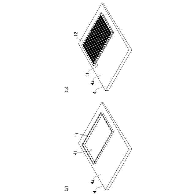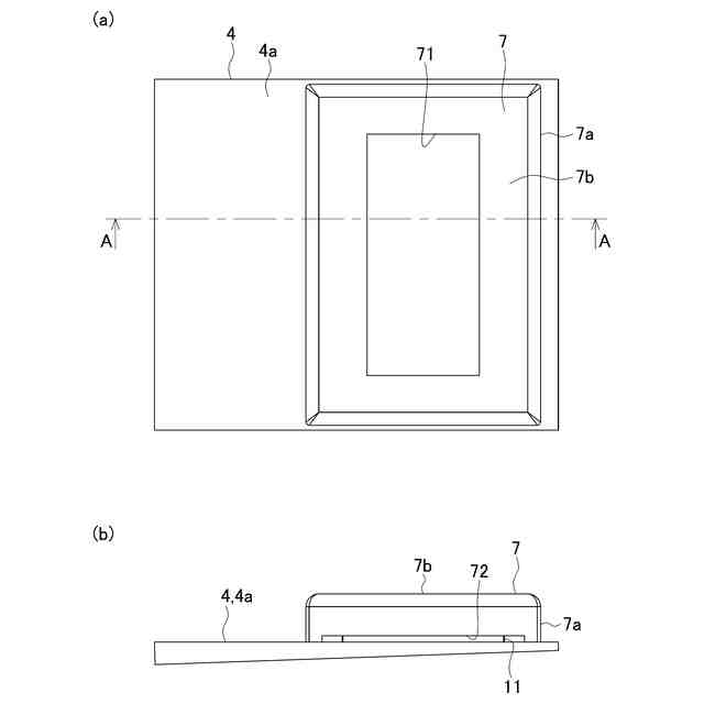 天板の斜視図であり、(a)は開口部を露出させた状態、(b)は中板を開口部上に配置した状態を示している。