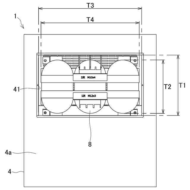 本発明の別の態様は、上記構成において、電気機器は変圧器であり、開口部は変圧器の横幅及び奥行きと同等の寸法かそれより大きく、変圧器の真上に形成されていることを特徴とする。