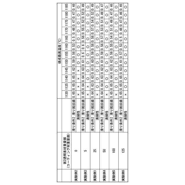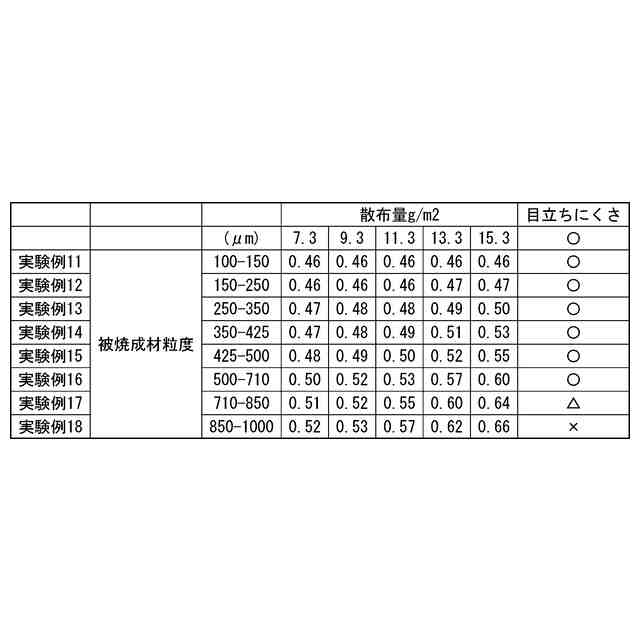 ガラス粒子のみを使用する場合、ガラス粒防滑材が透明で半円球になり、且つ、防滑性付与に十分な突起高さを保てる焼成温度範囲は比較的狭く15℃程度であった。タイルの製造においては窯内の温度バラつき以外にも原料ロットのバラつきによる焼成温度調整などもあり、15℃の温度範囲では安定生産ができず、25℃程度の安定領域が必要となる。